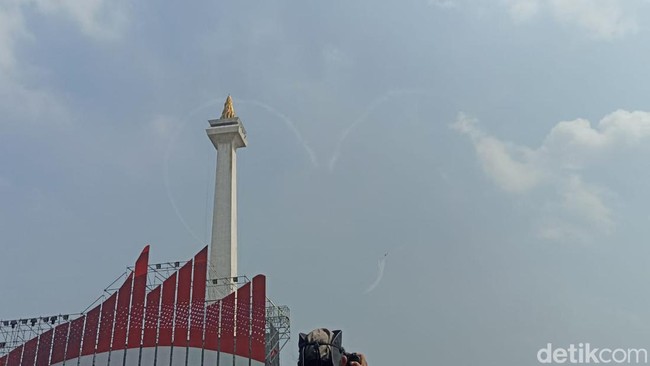 Para pilot memperlihatkan kepiawaiannya berkelok bermanuver. Mereka juga membentuk love sign di langit Monas, Jakarta.