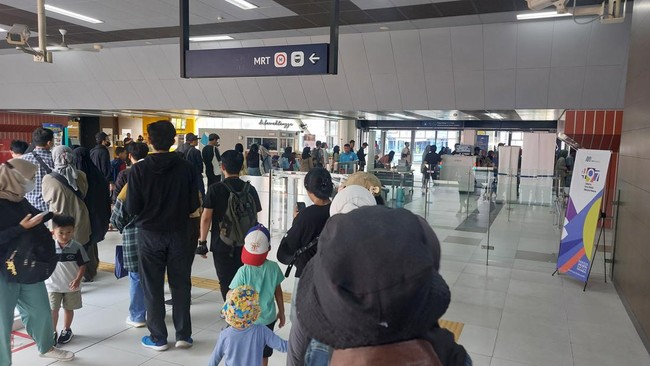 Pantauan detikcom di lokasi, Sabtu (5/10/2024), pukul 09.20 WIB di Stasiun MRT CSW antrean penumpang terjadi di sejumlah akses pintu masuk yang ada di gedung itu. Bahkan antrean mengular terlihat kembali tepat di pintu masuk MRT.