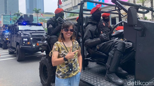 "Aku tinggal Cijantung, Kopassus. Tapi kan ini ngelihat langsung ke sini kan langka, ultah TNI sekali setahun. Terus kita bisa secara langsung lihat apa sih mobil mobil perang, gitu kan. Saya dari pagi di sini jam 09.00 WIB," ujarnya.