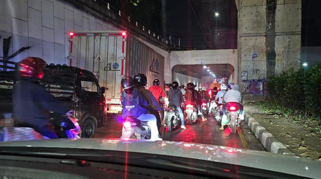 Dari gambar dan video yang dikirimkan, terlihat antrean kendaraan roda dua dan empat hanya sesekali bergerak. Kendaraan bergiliran untuk melewati terowongan secara perlahan.