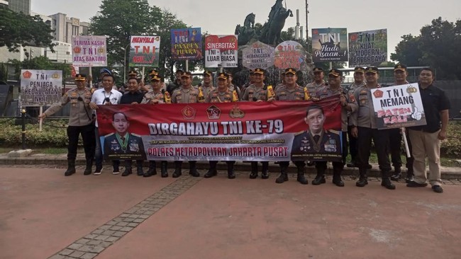 "Salam Presisi. Dari kawasan Patung Kuda Monas, Polres Metro Jakarta Pusat mengucap Dirgahayu TNI Ke-79. TNI Prima, jaya, jaya, jaya," imbuhnya.