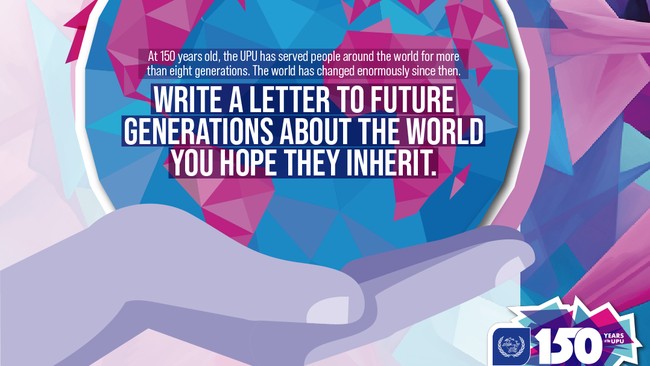 Untuk edisi tahun ini, para peserta akan didorong untuk merenungkan masa depan dunia dengan tema: "Pada usia 150 tahun, UPU telah melayani masyarakat di seluruh dunia selama lebih dari delapan generasi. Dunia telah berubah drastis sejak saat itu. Tulislah surat kepada generasi mendatang tentang dunia yang Anda harap akan mereka warisi."