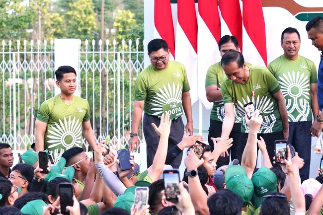 "Saya resmi membuka Nusantara TNI Fun Run 2024," ucap Jokowi.