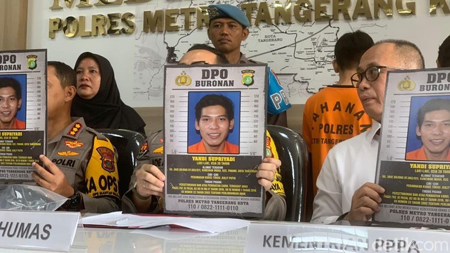 Dalam jumpa pers di Mapolres Metro Tangerang Kota, Selasa (8/10/2024), polisi memperlihatkan foto wajah tersangka Yandi. Jumpa pers dihadiri Kapolres Metro Tangerang Kota Kombes Zain Dwi Nugroho, Kabid Humas Polda Metro Jaya Kombes Ade Ary Syam Indradi, serta dari Kementerian Sosial.