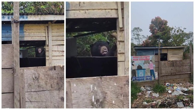Dari video yang diterima, beruang tersebut berada di belakang bangunan kecil, tepatnya di tempat pembuangan sampah.