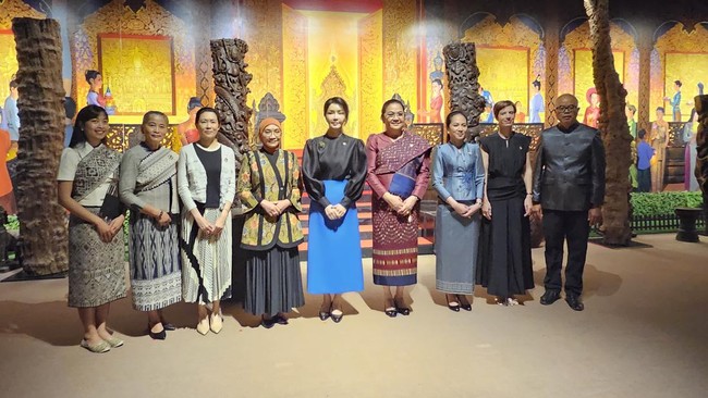 Istri Wakil Presiden Ma'ruf Amin, Hj Wury Ma'ruf Amin, menghadiri Spouse Program atas undangan Ibu Negara Republik Demokratik Rakyat Laos, Madame Vandara Siphandone. Mereka melihat karya seni berupa patung dan pahatan dari kayu hingga metal.
