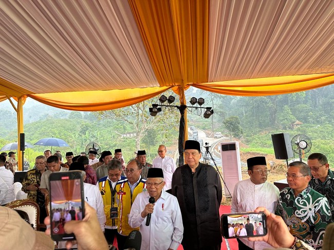 Groundbreaking dilakukan di Rawa Gede, Sukamakmur, Kabupaten Bogor, Minggu (13/10/2024). CT, dalam sambutannya, bercerita tentang sosok Ma'ruf yang segera pensiun dari jabatan Wapres pada 20 Oktober mendatang.