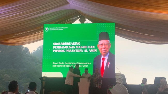 Wapres Ma'ruf Amin bersyukur pembangunan pondok pesantren (ponpes) Darul Amin di Rawagede, Kabupaten Bogor, Jawa Barat, dapat dimulai. Hal itu disampaikan Ma'ruf saat melakukan peletakan batu pertama atau groundbreaking ponpes tersebut.