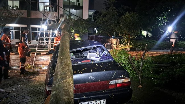 "Waktu kejadian pukul 18.45 WIB, terima laporan pukul 19.32 WIB. (penyebab pohon tumbang) hujan deras dengan intesitas tinggi dan angin kencang yang melanda wilayah tersebut," kata Hidayatullah.