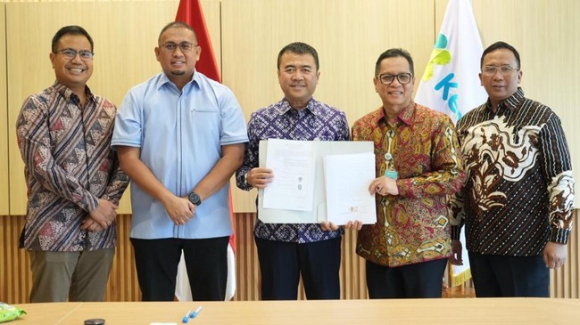 Penandatanganan Perjanjian tentang Ganti Rugi atas Pelepasan Aset Milik PT KAI (Persero) untuk pengembangan Pelayanan Kelas Rawat Inap Standar (KRIS) di RSUP M Djamil Padang digelar di gedung dr. Adhyatma Kementerian Kesehatan, Jakarta Selatan, Selasa (15/10/2024). Acara ini dihadiri dr Azhar Jaya, Sekretaris Kementerian BUMN Rabin Indrajad Hattari, Dirut RSUP M Djamil dr Dovy Djanas, Direktur Keselamatan dan Keamanan PT Kereta Api Indonesia (Persero) Dadan Rudiansyah, serta Andre Rosiade.