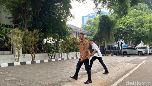 Pantauan detikcom di Jalan Kertanegara, Selasa (15/10/2024), Giring tiba pada pukul 14.56 WIB mengenakan batik cokelat.