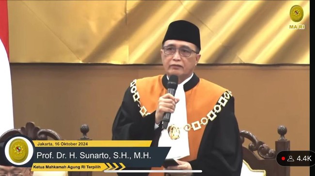 Hakim agung Prof Dr Sunarto terpilih menjadi Ketua Mahkamah Agung (MA) RI menggantikan Prof M Syarifuddin, yang akan memasuki masa pensiun pada November mendatang. Sunarto dipilih melalui sidang paripurna khusus pemilihan Ketua Mahkamah Agung RI.