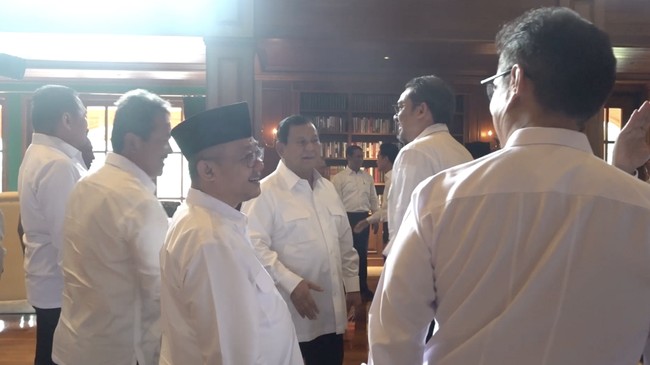 Sementara itu, dalam video yang diterima, terlihat para menteri yang menerima pembekalan mengenakan pakaian warna putih. Prabowo dan wapres terpilih Gibran Rakabuming Raka, yang juga terlihat mengenakan kemeja putih, menyalami tokoh-tokoh yang hadir.