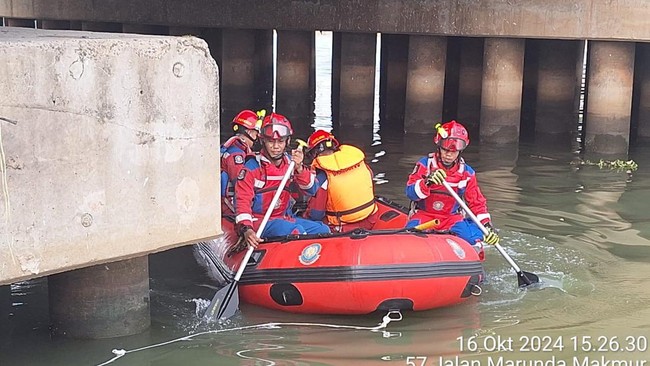 Petugas Sudin Gulkarmat Jakarta Utara yang mendapatkan laporan permintaan bantuan pencarian orang langsung meluncur ke lokasi. Sekitar pukul 14.50 WIB pencarian dilakukan.