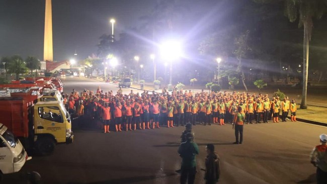 "Kami akan menerjunkan 600 personel pada saat persiapan, dan 800 personel saat acara berlangsung. Petugas dikonsentrasikan di area sekitar gedung DPR/MPR RI, Istana Negara, kawasan Monas, Jl Thamrin-Sudirman, serta sekitar Bandara Halim Perdanakusuma. Petugas ini selain ribuan petugas organik yang bertugas di seluruh Jakarta," kata Kepala Dinas Lingkungan Hidup DKI Jakarta Asep Kuswanto dalam keterangannya, Kamis (17/10/2024).