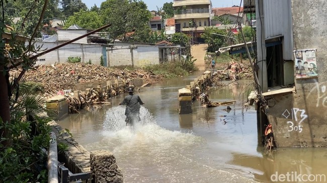Pantauan detikcom di lokasi, Kamis (17/10/2024), tampak minimnya aktivitas warga di permukiman ini. Lokasi banjir berada di jalan turunan yang berjarak sekitar 10 meter dari permukiman warga.