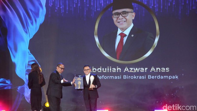 MenPAN-RB Abdullah Azwar Anas mendapat penghargaan detikcom Awards 2024. Awar Anas dinobatkan sebagai 'Tokoh Reformasi Birokrasi Berdampak'.