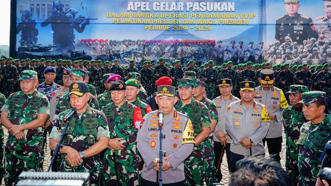 "Tentunya di dalam pengamanan kali ini kita bagi menjadi delapan satgas," ujar Kapolri Jenderal Listyo Sigit usai apel pengamanan pelantikan Presiden dan Wapres di Monas, Jakarta Pusat, Jumat (18/10/2024).