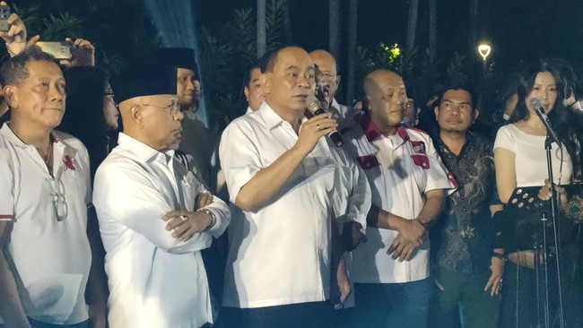 Tampak Ketua Projo yang juga Menkominfo RI Budi Arie dalam acara ini. Terlihat pula, Ketua Umum Relawan Solidaritas Merah Putih (Solmet) Silfester Matutina, Ketum Bara JP Utje Gustaaf Patty, hingga Komandan TKN Fanta Arief Rosyid.