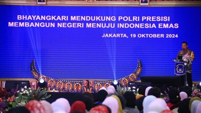 "Juga berbagai macam kegiatan Bhayangkari di bidang ekonomi sosial budaya dalam mewujudkan visi Indonesia emas 2045," ujar Jenderal Sigit.