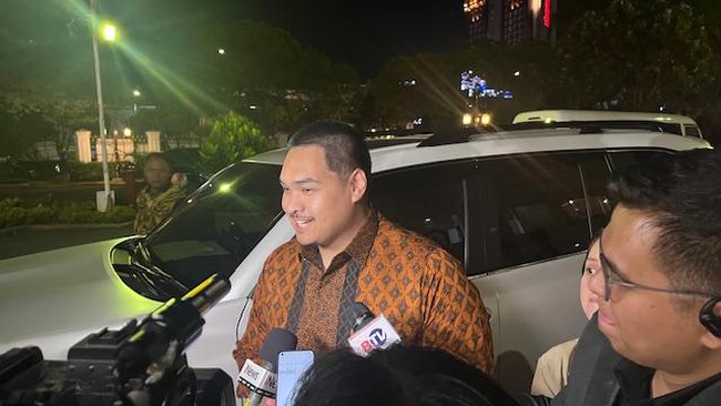 Politikus muda Partai Golkar Dito Ariotedjo tiba di Istana Negara jelang pengumuman kabinet Prabowo-Gibran. Dito, yang diisukan tetap menjabat Menpora, menyebut dirinya masih menjadi menteri termuda.