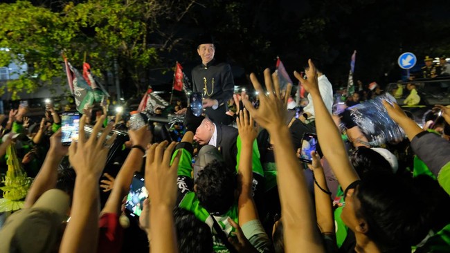 Presiden Republik Indonesia periode 2014-2024 Joko Widodo (Jokowi) disambut meriah warga Solo, Jawa Tengah. I kemabali ke kampung halamannya setelah purna tugas sebagai kepala negara selama dua periode beruntun, yakni 2014-2019 dan 2019-2024.