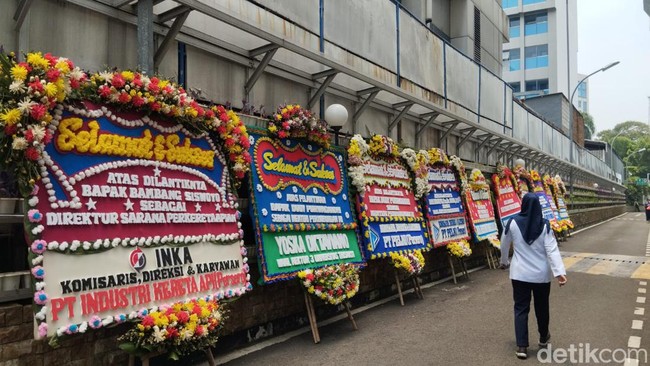 Lalu di depan Gedung Kemenhub juga terdapat karangan bunga untuk Dudy Purwagandhi. Kemudian, ada juga karangan bunga di Kemenko Polhukam untuk Budi Gunawan selaku Menteri Koordinator Bidang Politik dan Keamanan yang baru.