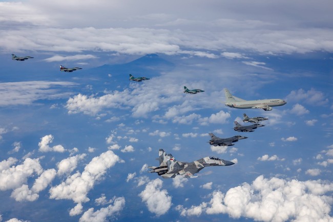 "Foto diambil dari TS-1602 (F-16 BM). Fotografer: Lettu Pnb Chandra Yudha Bakti (backseater). Front seater: Kapten Pnb Windi Darmawan," jelas TNI AU.