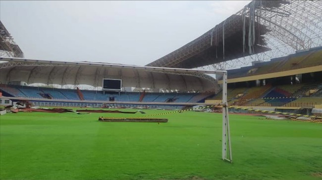 Berdasarkan foto dan video yang diterima detikcom, terlihat sejumlah atap dari Stadion Wibawa Mukti terlepas. Namun atap Stadion Wibawa Mukti yang terlepas hanya sebagian.