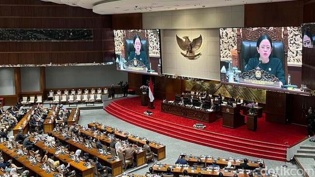 Rapat digelar di gedung Nusantara II MPR/DPR/DPD RI, Senayan, Jakarta, Selasa (22/10/2024). Ketua DPR RI Puan Maharani memimpin langsung rapat paripurna tersebut.