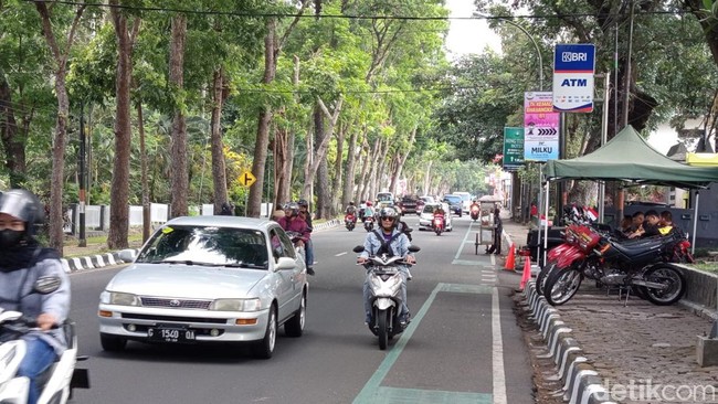 Kemudian di kanan dan kiri gerbang utama ini terpasang umbul-umbul bendera Merah Putih. Arus lalu lintas sempat agak tersendat saat hujan turun sekitar pukul 14.00 WIB karena sejumlah pengendara motor menepi untuk memakai jas hujan.