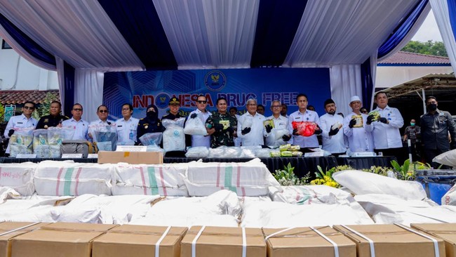 Badan Narkotika Nasional Republik Indonesia (BNN) memusnahkan 3,3 ton barang bukti hasil tindak pidana narkotika. Barang bukti itu dikumpulkan dari 9 kasus penyitaan narkoba dengan total 29 tersangka.