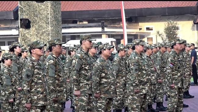 Diketahui, retreat hari kedua ini dimulai dengan olahraga dan latihan baris-berbaris. Semua anggota Kabinet Merah Putih masih kompak mengenakan seragam komponen cadangan (komcad).