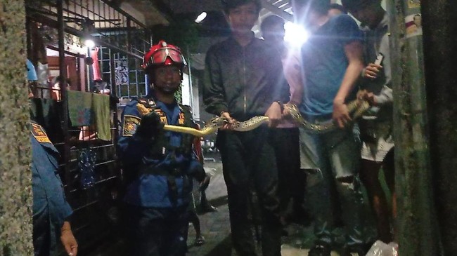 "Pelapor melihat ular sanca kurang lebih 2 meter, keberadaannya di dalam kamar mandi. Pelapor langsung menghubungi pihak pemadam kebakaran dan penyelamatan untuk penanganan ular tersebut," kata Ade.