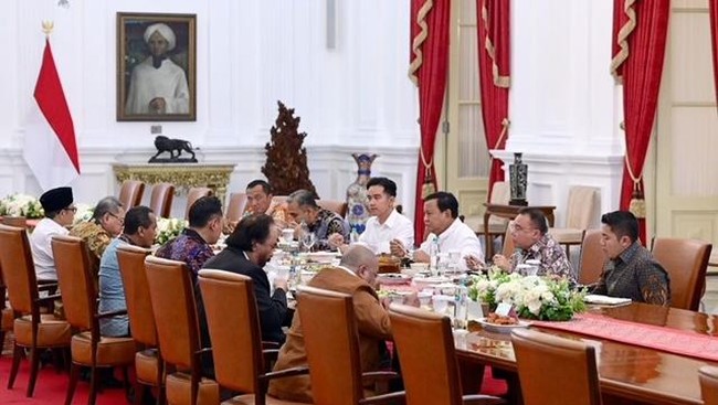 Presiden Prabowo Subianto mengumpulkan pimpinan partai politik (parpol) koalisi pemerintah untuk makan siang di Istana Jakarta. Wapres Gibran Rakabuming ikut dalam pertemuan tersebut.