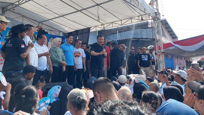 Calon Gubernur Jawa Tengah (Jateng) nomor urut 2, Ahmad Luthfi menyambangi Desa Trangsen, Kecamatan Gatak, Kabupaten Sukoharjo untuk melepas jalan sehat pagi ini. Luthfi mengajak masyarakat untuk tetap rukun di tengah kontestasi politik Jawa Tengah.