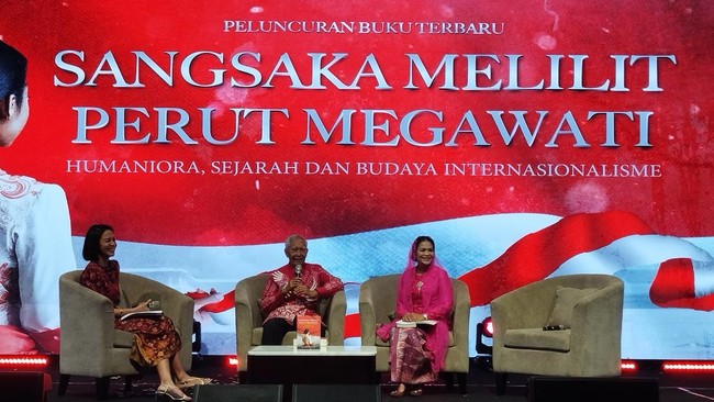 Putra Presiden RI ke-1 Sukarno, Guntur Soekarnoputra, meluncurkan buku berjudul 'Sangsaka Melilit Perut Megawati: Humaniora, Sejarah dan Budaya Nasionalisme Internasionalisme'. Guntur menjelaskan alasan memberikan judul tersebut untuk bukunya itu.
