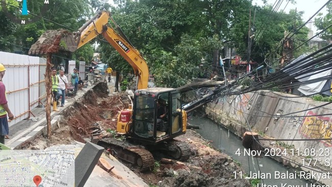 "Sekitar pukul 16.00 sore hujan lebat dengan intensitas cukup tinggi sehingga air yang ada di Kali Utan Kayu penuh bahkan hampir melimpas dan 1 alat excavator yang dipergunakan oleh rekanan bahkan sampai hampir hanyut," kata Puryanto.