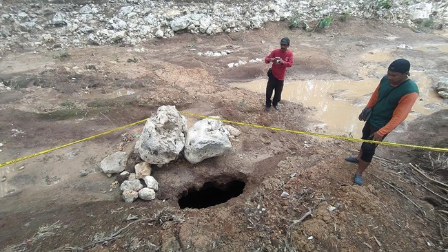 "Awalnya ada aliran sungai mengarah ke situ (lubang) saat sungai meluap. Tapi kita belum tahu aliran airnya mengarah kemana," katanya.