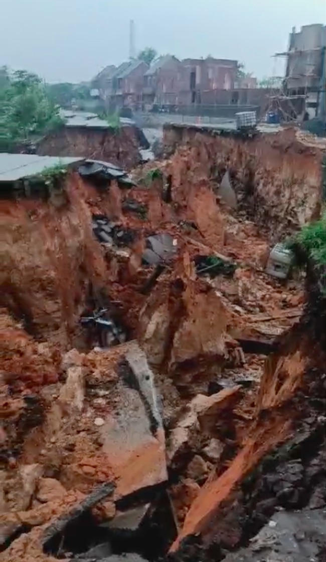 Pada video lainnya, terlihat permukaan jalan dari beton retak di banyak titik dan juga ada yang longsor. Petugas BPBD Kabupaten Tangerang, kepolisian, hingga pemadam kebakaran (damkar) sudah datang ke lokasi untuk memastikan kondisi.