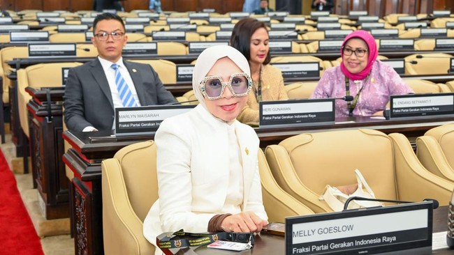 "Izin, Bu, Pak Menteri Dikdasmen kan tadi bilang ada kata 'gantung' lagunya Teh Melly," ujar Melly di akhir rapat di Gedung DPR RI, Senayan, Jakarta Pusat, Rabu (6/11/2024).