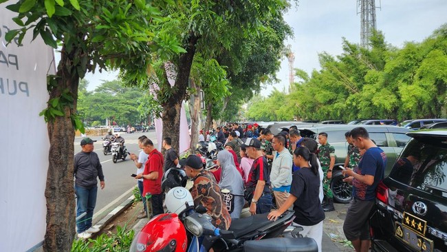 Budi datang bersama anak-anaknya. Dia menyebut anak-anaknya senang meski hanya bisa menyaksikan upacara yang dipimpin Gibran dari luar TMP Kalibata.