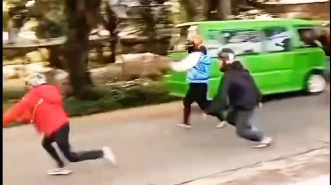 Peristiwa tersebut terjadi di tengah jalan raya yang dilintasi banyak pengendara. Beberapa pemotor tampak menepi akibat peristiwa itu.