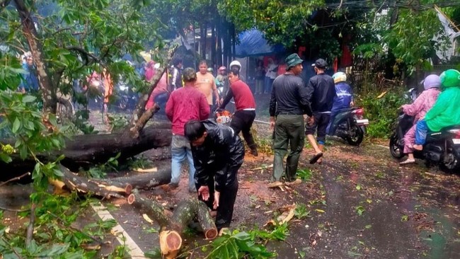 Dari video yang dilihat detikcom, Senin (11/11/2024), tampak pohon itu tumbang menutupi hampir seluruh jalan. Pengendara motor pun secara bergantian melintasi jalan tersebut.