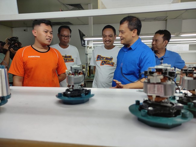 Ia menjelaskan Evercoss juga mempekerjakan buruh anak muda yang rata-rata lulus tak hanya SMK, tapi juga mereka yang tidak menggunakan BLK. Kuncinya para pekerja terbiasa untuk bekerja dan mengerjakan apa yang sering dikerjakan.