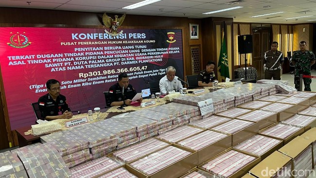 Kejaksaan Agung (Kejagung RI) kembali menyita uang tunai senilai Rp 301 miliar hasil tindak pidana pencucian uang (TPPU) di kasus dugaan korupsi korporasi Duta Palma Group. Uang tunai tersebut disita dari tersangka korporasi PT Darmex Plantation.