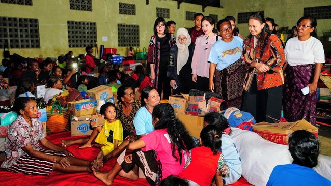 Berdasarkan keterangan yang didapatkan detikcom, Rabu (11/2024), Ketum Bhayangkari, Juliati Sigit Prabowo, meninjau warga terdampak bencana erupsi Gunung Lewotobi Laki-laki di Lewoingu, Kecamatan Titehena, Kabupaten Flores Timur, NTT.