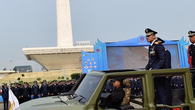 Menteri Koordinator bidang Infrastruktur dan Pembangunan Kewilayahan Agus Harimurti Yudhoyono (AHY) menghadiri upacara Pelantikan Terpadu Lulusan Sekolah Kedinasan Jalur Pola Pembibitan Kementerian Perhubungan Tahun 2024 di Silang Monas, Jakarta Pusat. AHY menjadi inspektur upacara.