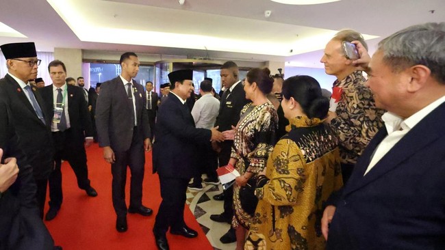 Lalu, dua orang ibu-ibu asal Indonesia bernama Vina dan Puji juga sangat senang bertemu langsung dengan Prabowo. Keduanya turut berjabat tangan dengan Prabowo.