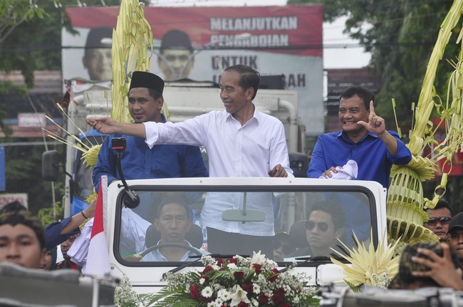 Sebagai informasi, Joko Widodo bersama Ahmad Luthfi-Gus Yasin menyapa warga Kabupaten Grobogan. Mereka melakukan pawai menggunakan jeep atap terbuka di Purwodadi.